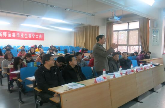 11月21日下午,学院在教学7#204举办2015届师范类毕业生教学大赛。学校教学督导委员龚喜平教授、中文系主任丁宏武教授、副主任李明德副教授,孙强副教授、张毓洲副教授五位老师担任大赛评委,学院各年级100余名同学观看了比赛。