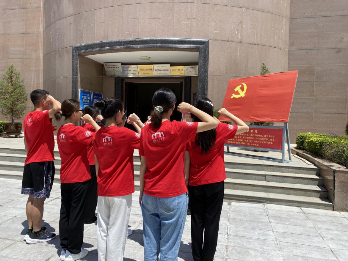 铭记历史,砥砺奋进。跟随讲解员的讲解,实践队员参观了榜罗镇会议纪念馆和榜罗镇会议旧址,重温长征路上这段伟大的历史岁月。参观结束后,实践队员中的党员面向党旗举行了庄严的重温入党誓词仪式,激发全体党员的爱国热情和对中国共产党的无限崇敬。