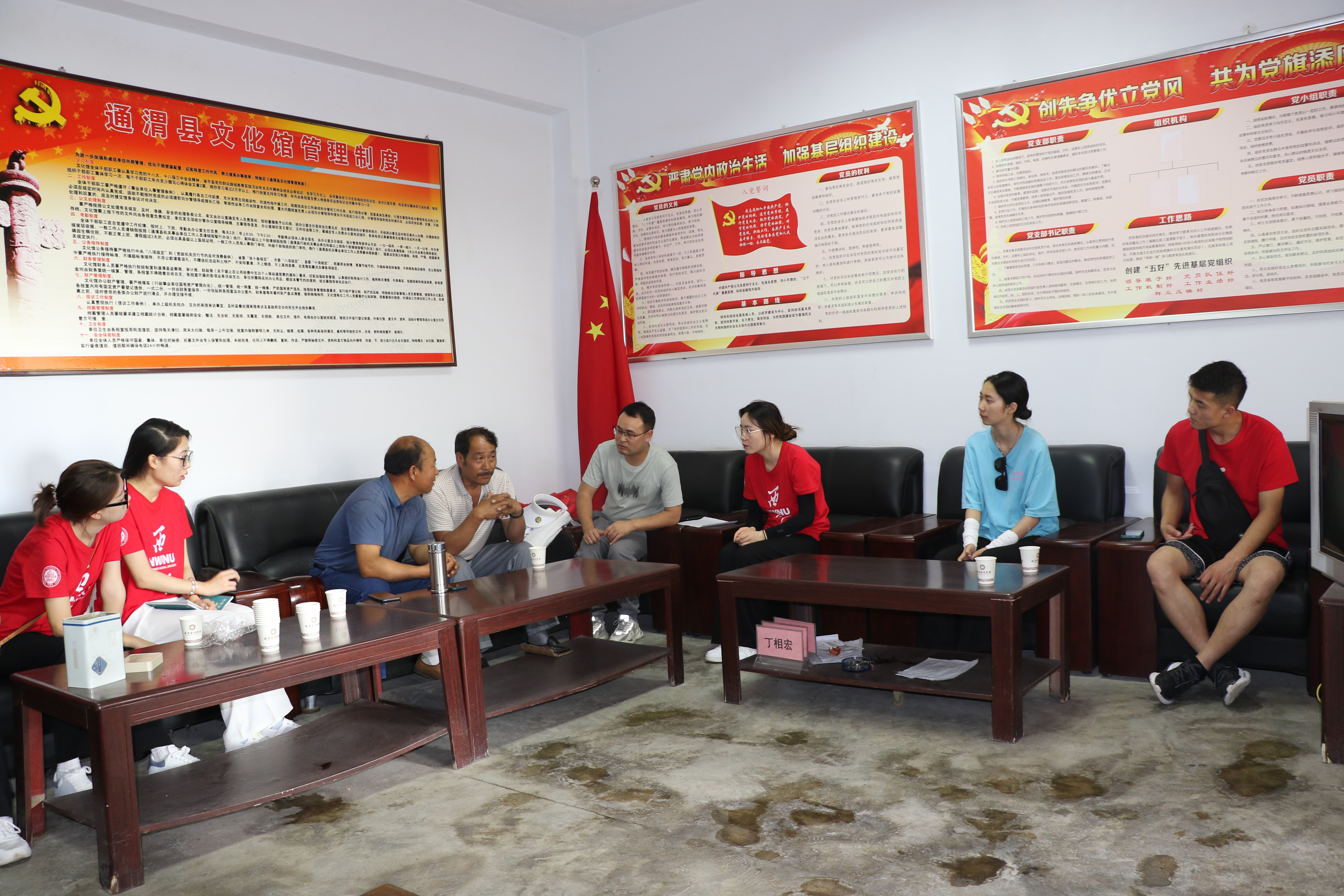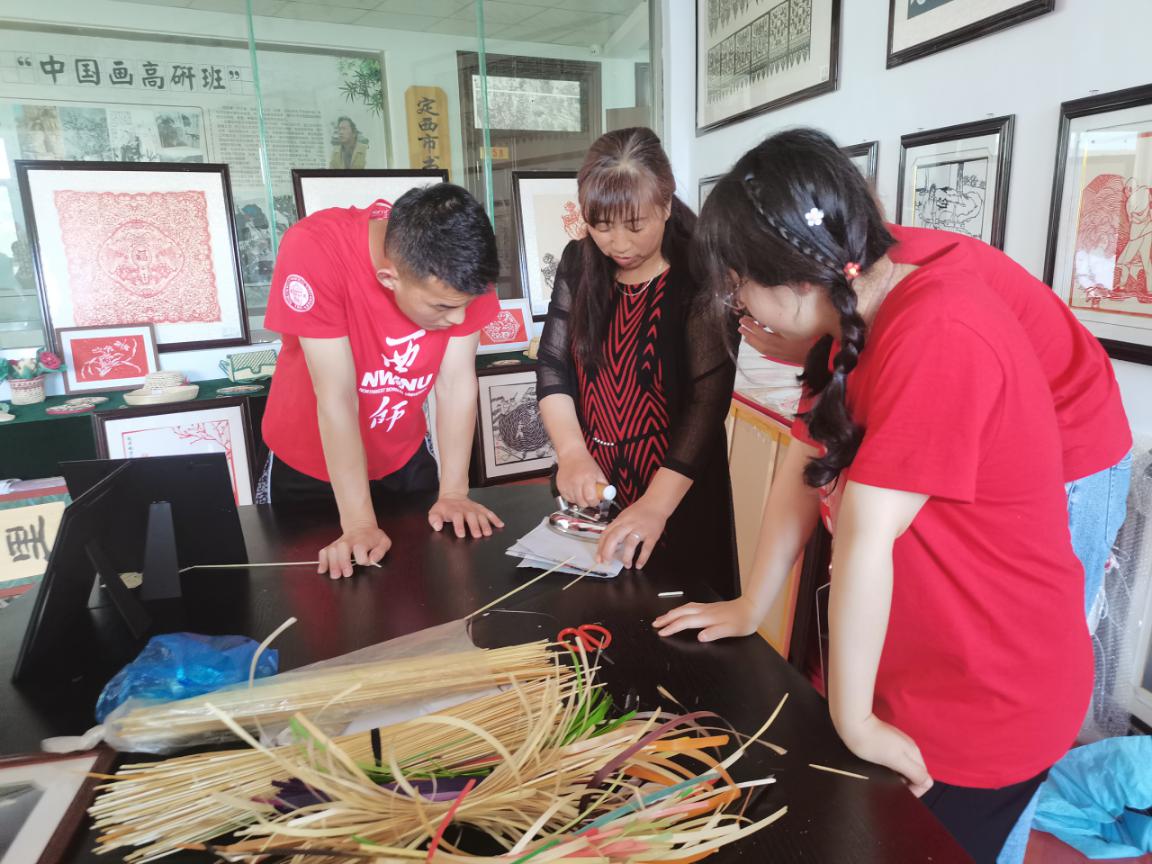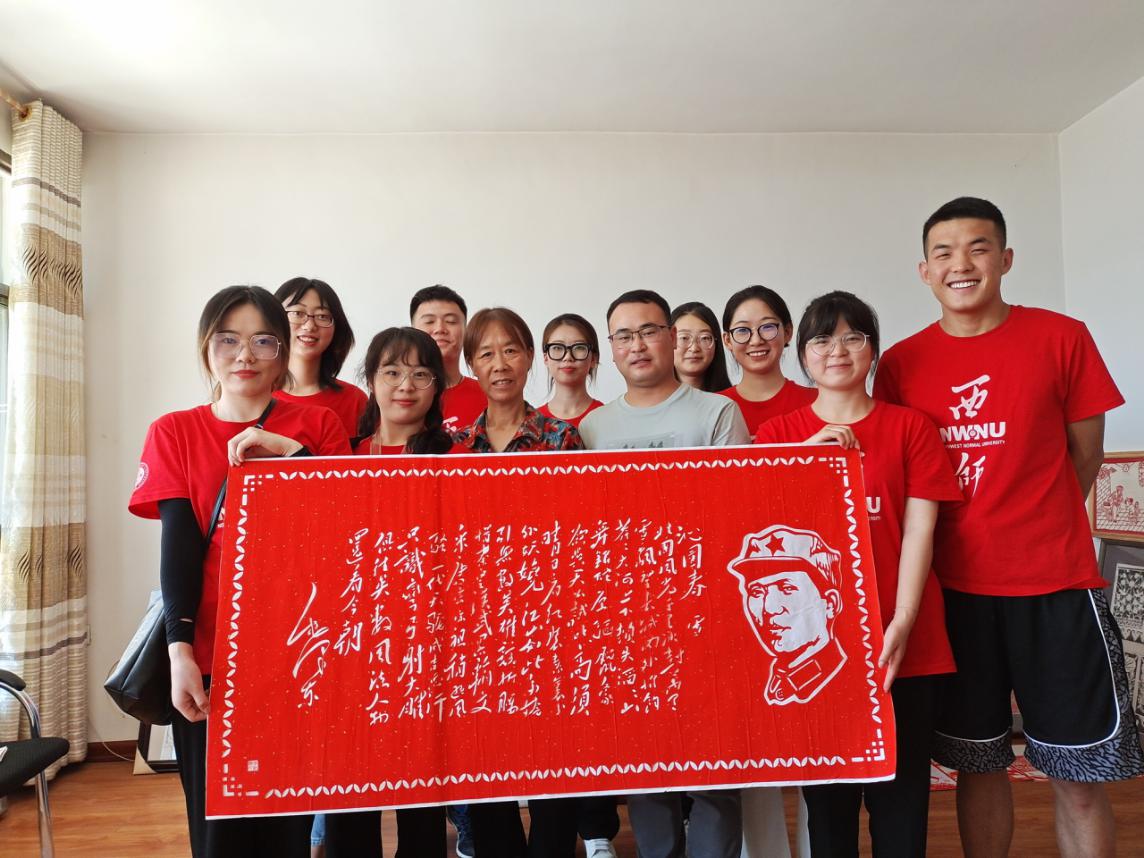 7月16日—7月21日,js555888金沙“非遗+红色文化”工作坊实践团一行11人赴定西通渭开展暑期社会实践活动。实践团立足当地文化特色,以通渭县红色文化和非物质文化遗产为实践载体,沉浸式体验通渭“非遗”文化小曲戏、剪纸、麦秆画、刻瓷、皮影中的红色元素,深度探寻通渭“非遗”和红色文化的魅力。