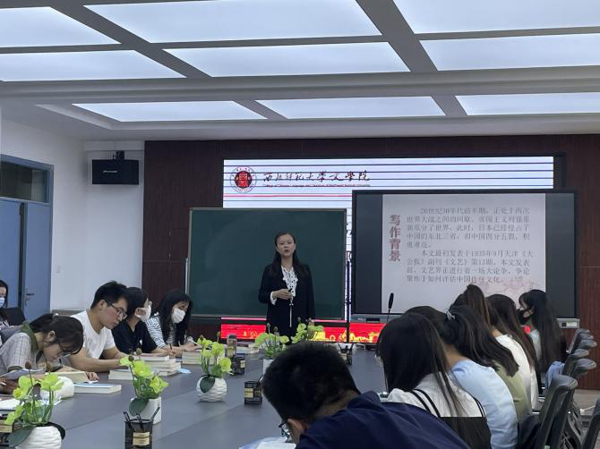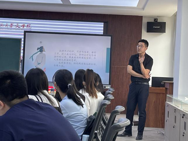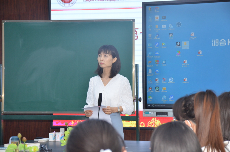 王晏桦授课内容为《杜甫五律的特征》,通过与学生的互动,仔细辨析《望岳》何以不是五律,进而总结杜甫五律的特征,循循善诱、自然亲切,富于逻辑性。
