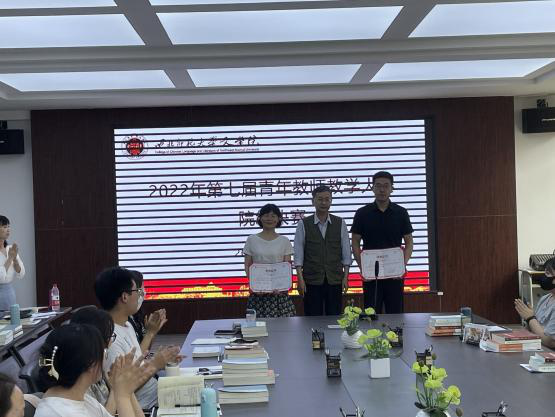 此次比赛,学院邀请教务处处长王治和教授、学校教学督导与评估委员会委员李建国教授、甘肃中医药大学连振波教授以及马世年教授、漆子扬教授、郭国昌教授、丁宏武教授、许琰教授、李明德副教授、王延模副教授担任专家评委。学院党委书记张理中同志出席活动并为获奖教师颁发荣誉证书。比赛由周小娟副教授主持,甘肃中医药大学定西校区及文学院部分青年教师、汉语言文学专业2019级2班部分同学到场观摩比赛。