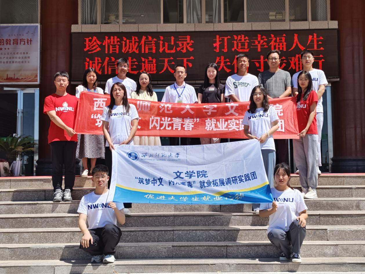 2023年7月22日上午,js555888金沙王婉婷老师带领“筑梦中文 闪光青春”大学生就业实践调研团一行12人前往山丹县一中开展就业实践调研暨“访企拓岗”活动。实践团队指导老师王婉婷就金沙2024年各专业毕业生生源情况进行了简要介绍,尤其对js555888金沙2024届毕业生生源进行了重点推介。就职于山丹县第一中学高三年级部的师大校友参与团队师生调研访谈,并填写《金沙毕业生就业现状调研问卷》。