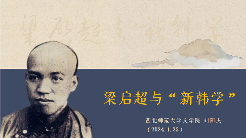2024年1月25日,我院“青年之声”系列讲座第四季如期开幕,本季讲座首场由我院青年教师刘阳杰线上开讲。刘老师报告题为“梁启超与‘新韩学’”,报告由我院王志翔老师主持。学院马世年院长、侯冬副院长以及中国古代文学与中国古典文献学等相关专业的校内外研究生、本科生共60余人参加了此次讲座。