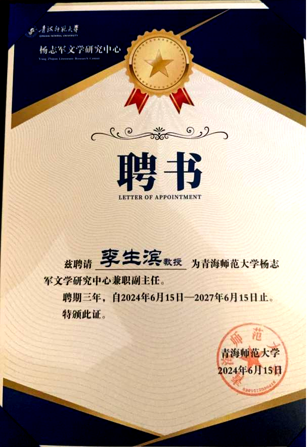 此次李生滨教授受聘为杨志军研究中心兼职副主任,不仅是对李生滨教授长期从事中国现当代文学研究的学术肯定,更是体现我院在西部文学研究领域的突出贡献和日益提升的学术影响力,对增强校际间的学术交流和师资队伍建设起到积极推动作用。