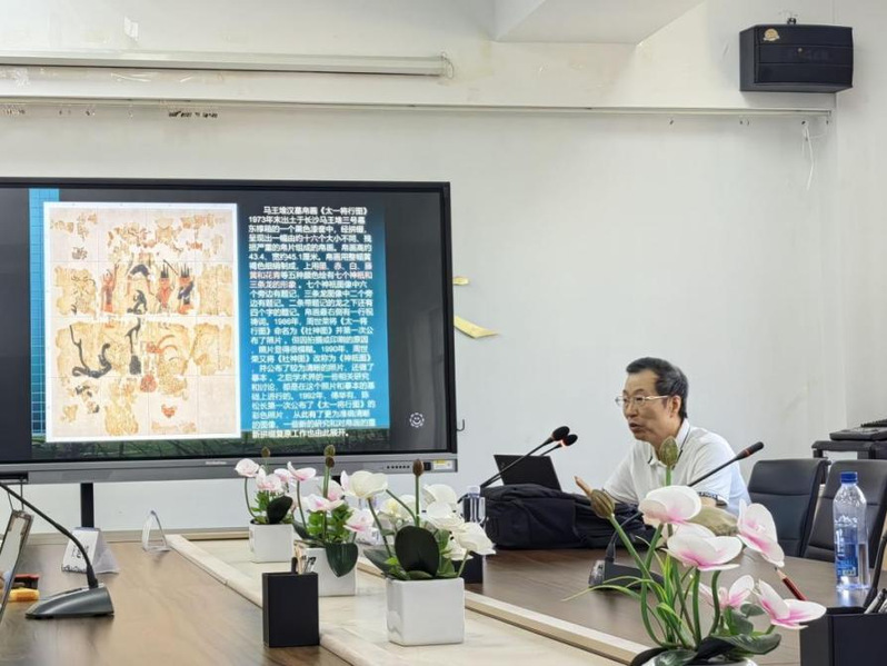 2024年6月25日,js555888金沙邀请复旦大学教授、出土文献与古文字研究中心主任、金沙特聘教授刘钊作了题为“马王堆汉墓帛书《太一将行图》与巫道辟兵术”的学术讲座,此次讲座亦为“简读西北工作坊”第97期讲座,讲座由js555888金沙洪帅教授主持,金沙国际文化交流学院杨同军教授、js555888金沙王延模副教授、陈丹奇讲师及汉语言文学各方向本科生、硕士研究生、博士研究生等40余人参加。