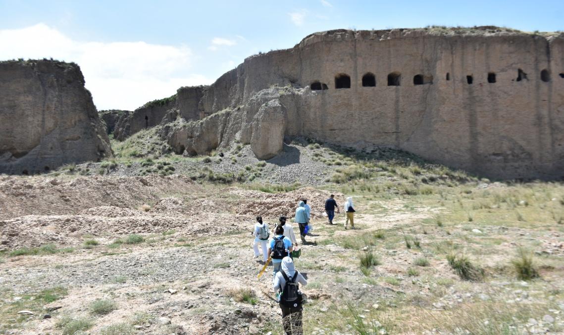 实践团队成员第一站到达民乐县的“上天乐石窟”。上天乐石窟,又名朝阳洞,位于张掖市民乐县城西北3千米处坐西向东的位置,开凿于洪水河西岸崖壁上。虽实地调研攀爬过程较为艰苦,但实践队成员始终不忘初心,以青春之姿砥砺前行。
