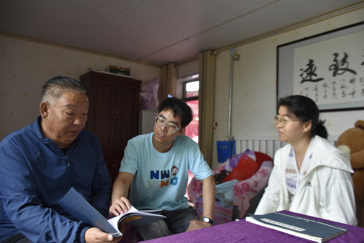 7月16日,实践团成员首先来到甘州区花寨乡宝卷传承人代继生家中。代继生是河西宝卷省级传承人,一家几代人都喜爱宝卷,并身体力行地投身于宝卷传承保护事业当中。在代继生家中,实践团成员以河西宝卷的典型代表《敕封平天仙姑宝卷》为中心,就宝卷的形成、念唱目的、念唱仪式等问题对传承人代继生进行提问,代继生认为宝卷中包含着朴实的价值观,通过一个个故事宣扬孝亲敬长理念,教育民众要尊老爱幼,多行善事。此外实践团还采访了传承人王学友。王学友是活跃在临泽地区的宝卷念唱人,据王学友介绍,临泽当地念唱最多的就是《敕封平天仙姑宝卷》,为了适应现代民众的听卷要求,王学友的团队还组织了二十多人的乐器班,用来在念唱宝卷时进行伴奏,增强宝卷念唱的音乐性。在与传承人的交流对话中,实践团各位成员都感受到了宝卷传承人在新时代背景下为了宣传、发扬、传承河西宝卷而做出的努力。