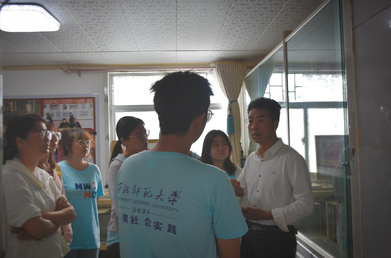 7月17日上午,实践团成员前往张掖市图书馆南华书院,与民俗专家任积泉带领的河西宝卷“守正创新”志愿者团队交流。他的团队以“旧瓶装新酒”的形式,借用传统河西宝卷的曲牌曲调、说唱形式创作新的、符合现代民众审美的新宝卷作品。任积泉向实践团成员详细讲解了“守正”与“创新”所代表的意义,教育实践团成员们只有秉持正确的态度,才能在保护传承河西宝卷这项非物质文化遗产的道路上行稳致远。