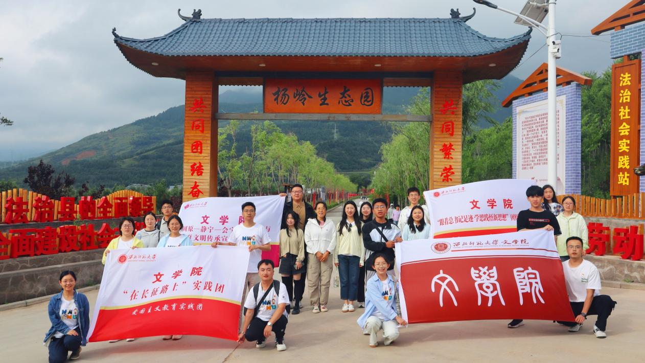(01 实践团在杨岭生态园门口合影 拍摄者:马悦榕 )