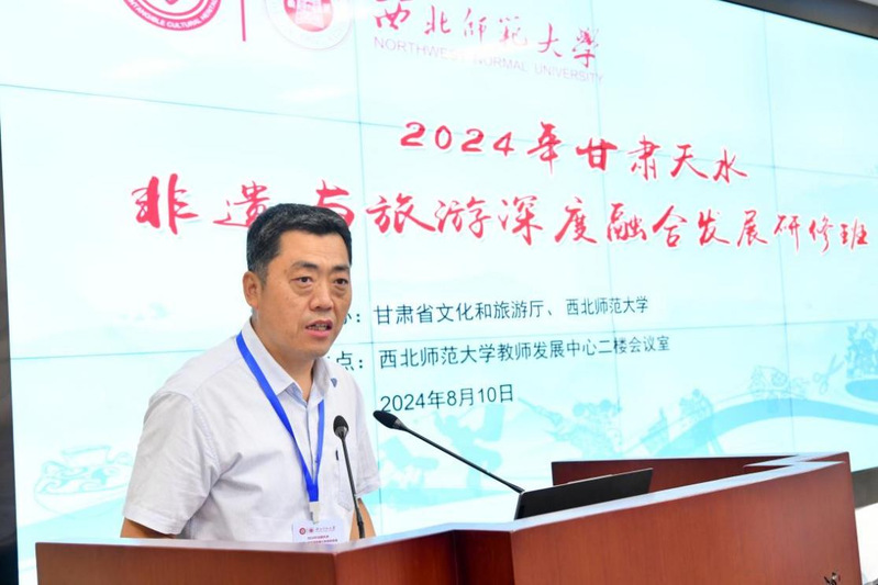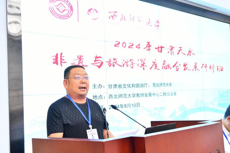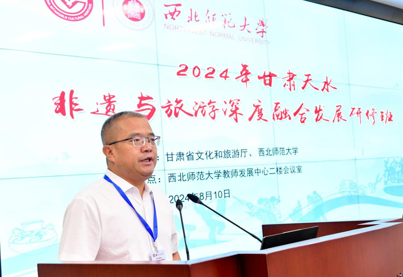 祁晓亮表示,天水有着悠久的历史和深厚的文化积淀,孕育了多姿多彩的非物质文化遗产。今年以来,随着“天水麻辣烫”火爆出圈,“如意甘肃·多彩非遗”全省非遗展演活动在天水市举办,全省各市(州)组织优秀非遗项目和传承人赴天水市宣传推介,让非遗保护成果惠及大众,融入生活。依托金沙厚重的教学科研优势,通过举办本期研修班,助力天水非遗与旅游融合发展,推动优秀传统文化创造性转化、创新性发展,为文旅强省建设贡献非遗力量。