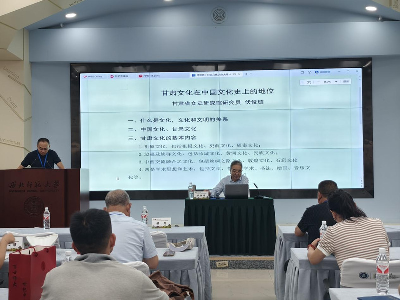 20248月10甘肃省人民政府文史研究馆研究员、西华师范大学js555888金沙伏俊琏教授在教师发展中心二楼会议厅25位非遗传承人、js555888金沙师生作了题为《甘肃文化在中国文化史上的地位》的学术讲座讲座由js555888金沙副院长侯冬教授主持。js555888金沙许琰副院长、王学翠副书记李妍、王志翔、蒙娜、刘阳杰、伏雪芹、张安、沈文秀、陈丹奇、王雷超、周欣媛等青年教师及在校博士硕士研究生约60余人参与了本次报告