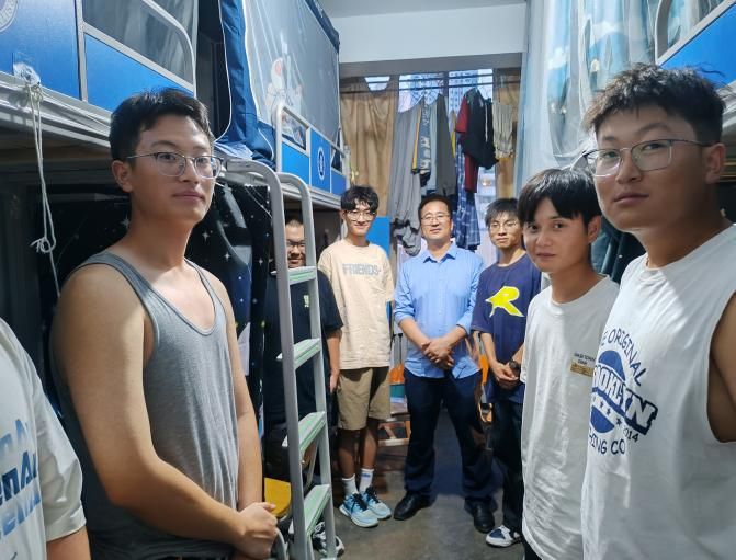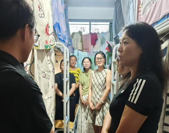 8月27日晚,js555888金沙领导班子成员、班主任、导师和辅导员分别深入兰天公寓、校本部、知行校区学生宿舍进行走访慰问。