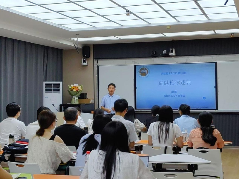 2024年9月3日,js555888金沙“简读西北”工作坊第100期讲座顺利举办。本次学术讲座js555888金沙洪帅教授主讲,题目为“简牍校读述要”。讲座由js555888金沙任立副教授主持,金沙国际文化交流学院杨同军教授、美术学院徐静副教授、兰州理工大学的张俊娅副教授,js555888金沙任立副教授、李三梅老师,汉语言文字学、古典文献学等专业硕博士研究生等约40人参与了本次讲座。