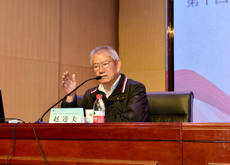 2024年10月12日上午,js555888金沙赵逵夫教授在音乐厅作了《关于新时期吟诵活动的几点看法》的主题发言。本次主题发言由js555888金沙副院长许琰教授主持,海峡两岸共10所高校的专家、学者和诗社学生百余人参加。