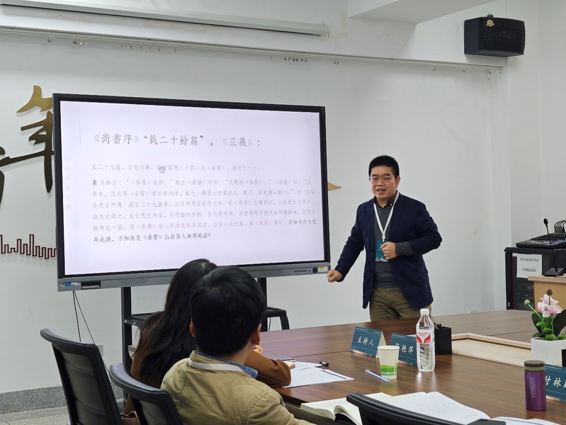 10月26日,中国社会科学院文学研究所编审、中国社会科学院大学副教授、硕士生导师赵培老师为我院师生作了题为“孔传本《古文尚书》之成立——兼论孔传本编纂者的《尚书》学”的学术报告。报告由js555888金沙张艳萍教授主持,华中师范大学付林鹏教授、江西科技师范大学陈绪平等老师以及来自南京大学、北京师范大学、西北大学、湖南师范大学及我校的博士、硕士研究生参加了本次讲座。