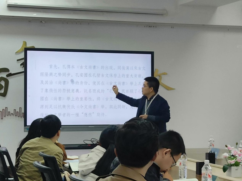 赵培老师以孔传本《古文尚书》为研究对象,在正式讲解之前,以王国维的论述为引言,展开梳理了汉朝至清朝《尚书》学的发展史,指出孔传本《古文尚书》的编整有其学派脉络和内在理据。