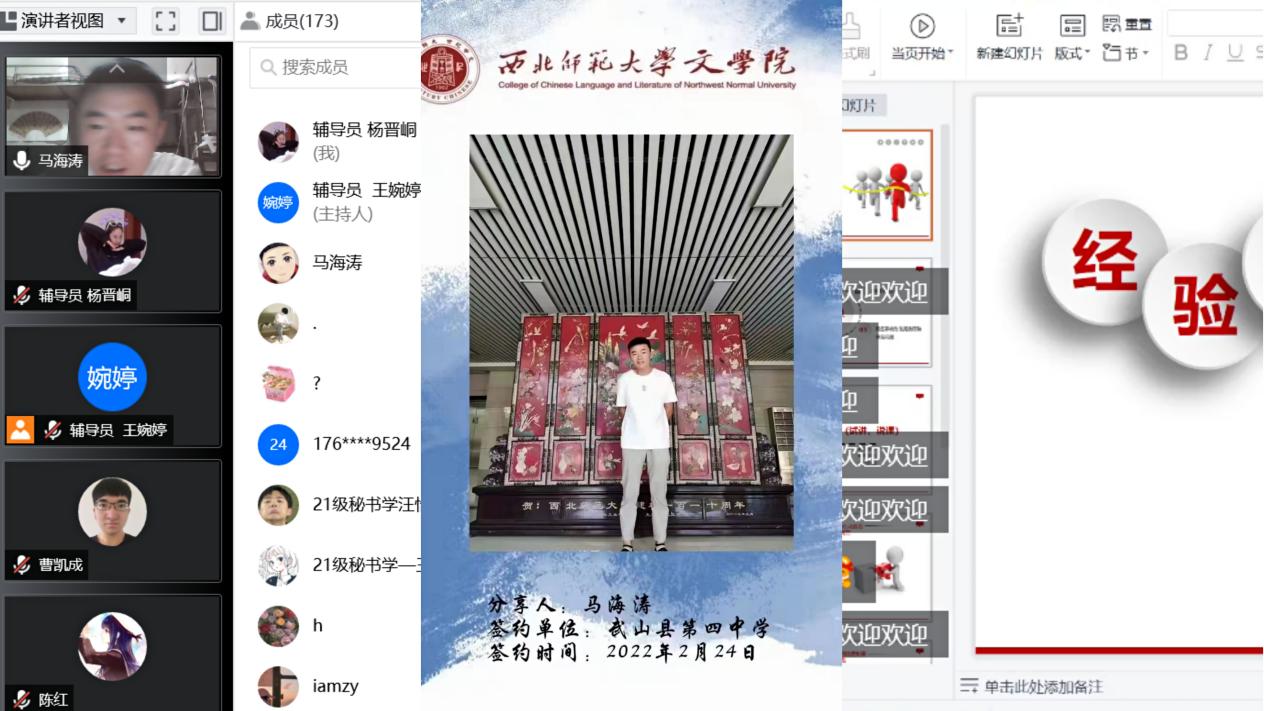 现已签约武山县第四中学的马海涛同学以亲身经历向大家讲述了试课、说课过程中的技巧以及需要注意的问题,并向同学们强调了网签系统的使用流程和常见问题。
